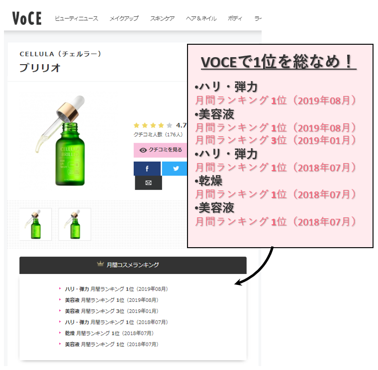 その噂はどんどん広まり美容の専門家が集まる「VOCE」でも月間ランキング第1位を獲得!