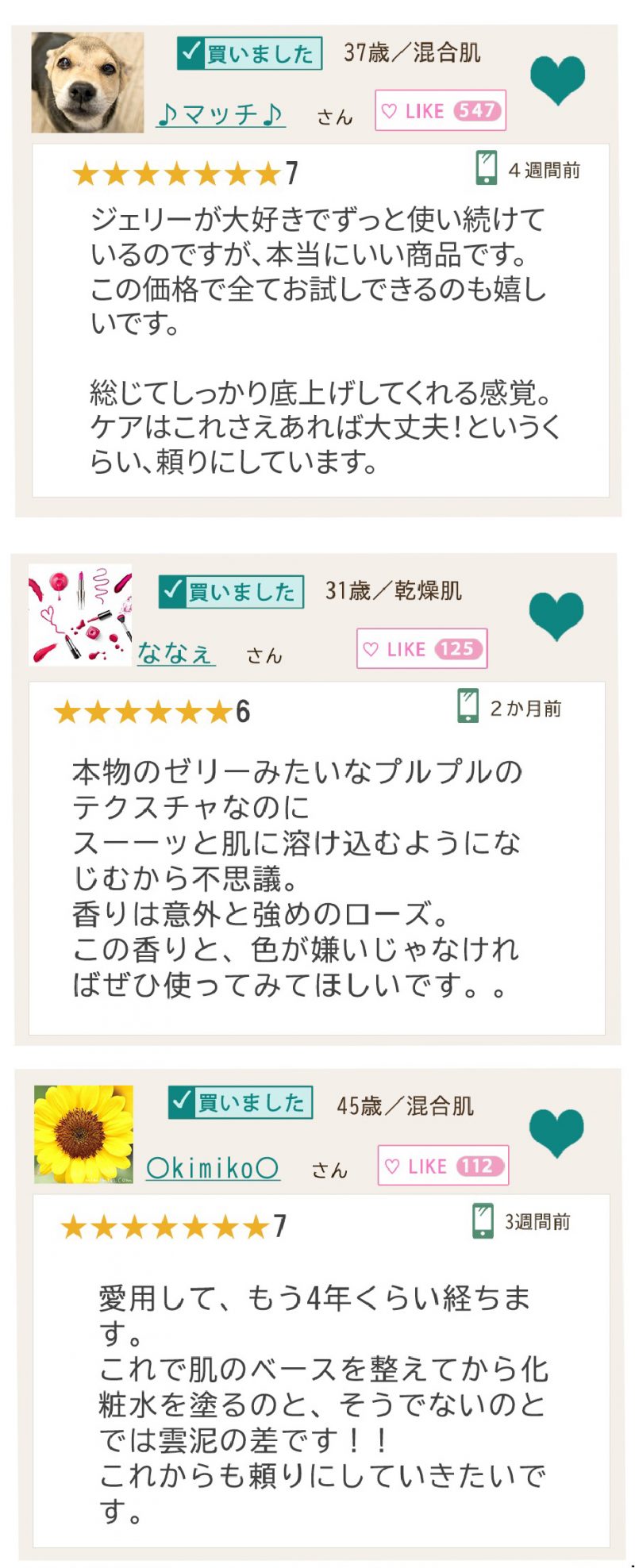 「ジェリーがあれば、化粧水やクリームはドラックストアの安いのでも十分」