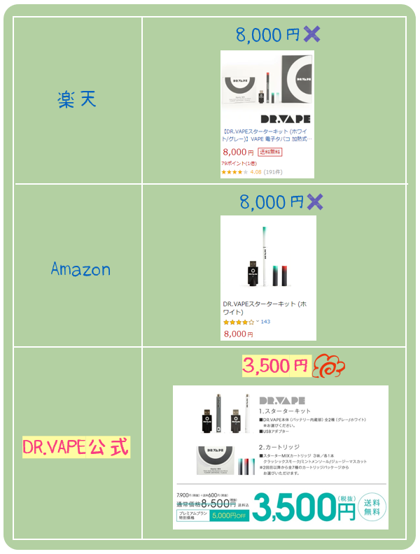 実はDR.VAPEを始めてから嬉しいことに、月々、飲み代2回分くらい節約できるようになりました!